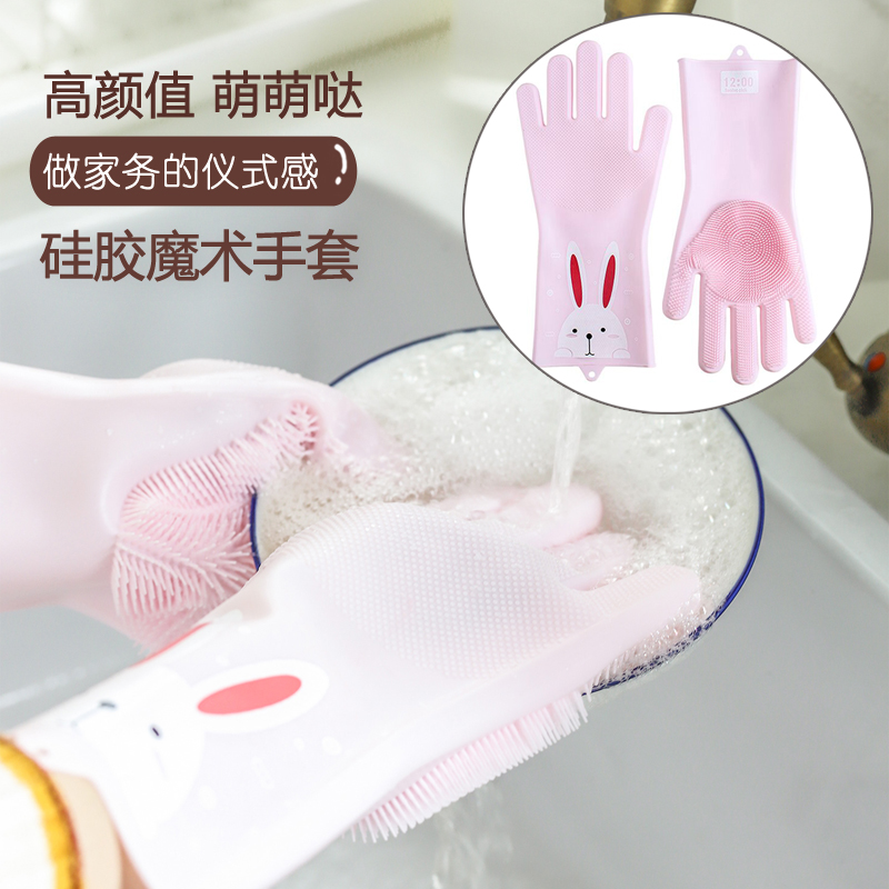 Home Kitchen Clean Wash Home Silicone Gel Magic Gloves Dishwashing Clean Anti-Burn