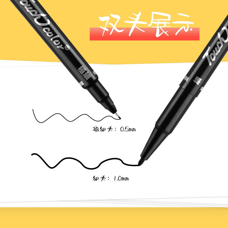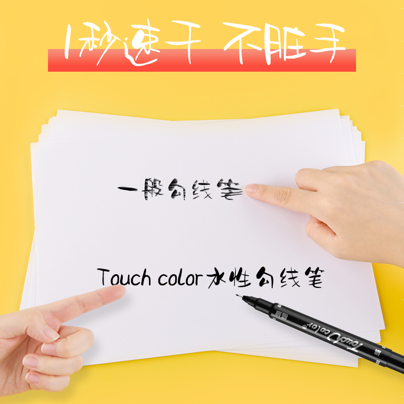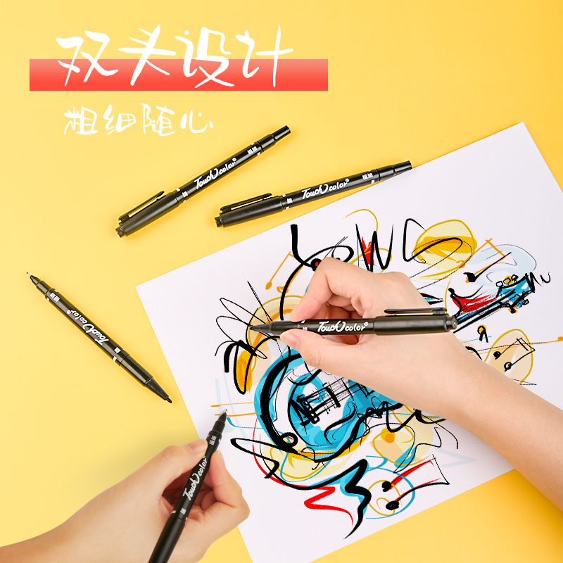 touchcolor double-ended hook line pen fine art student special black hand-drawn stroke pen hook line pen does not fade quick dry water-based marker pen beginner children's drawing black thickness double head