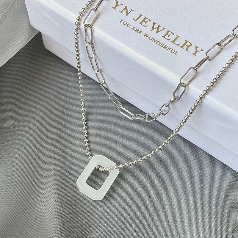 Double layer laminated necklace and field jade pendant necklace woman s925 pure silver lock bone chain light extravagant and small crowdsourced design