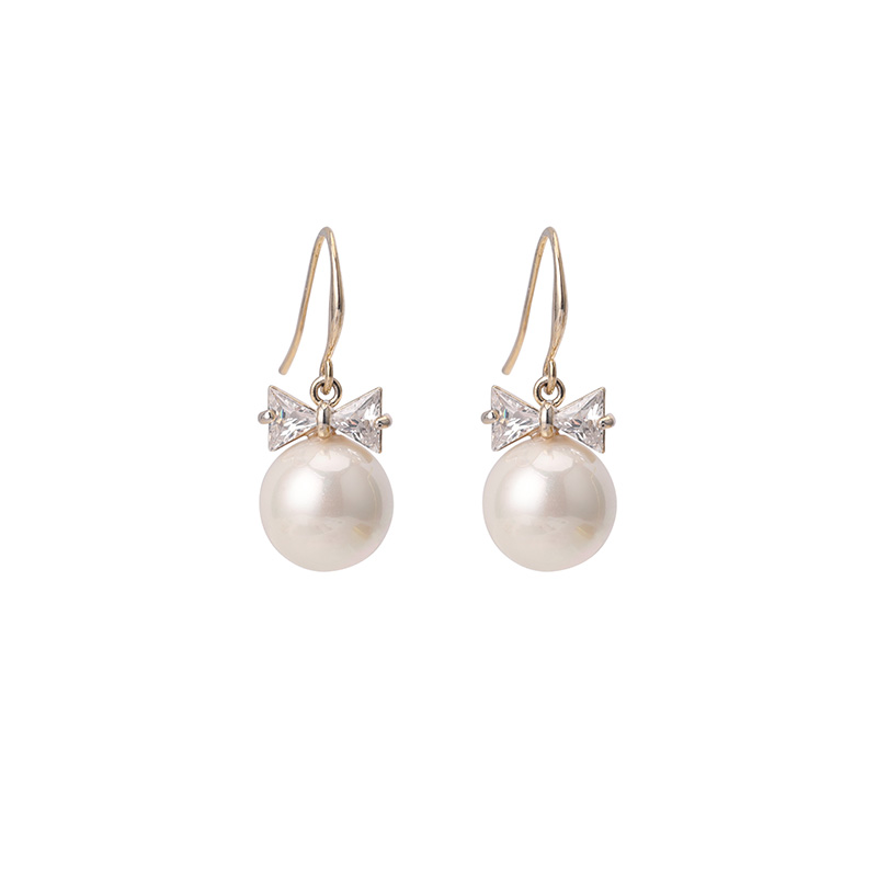 Internet celebrity autumn and winter earrings female zircon bow design niche pearl earrings new trendy Korean temperament red earrings
