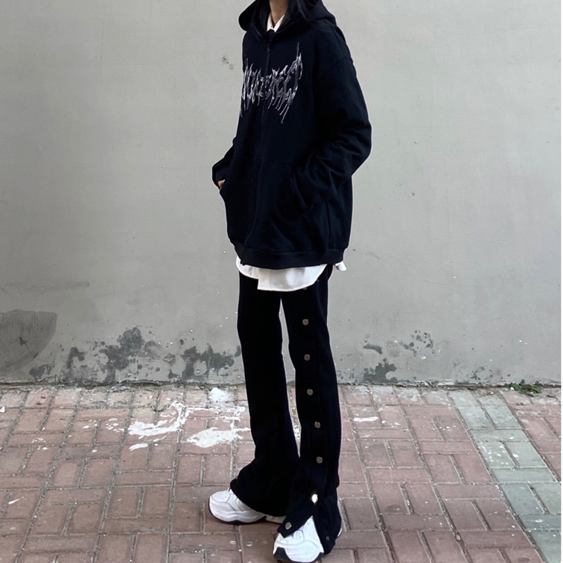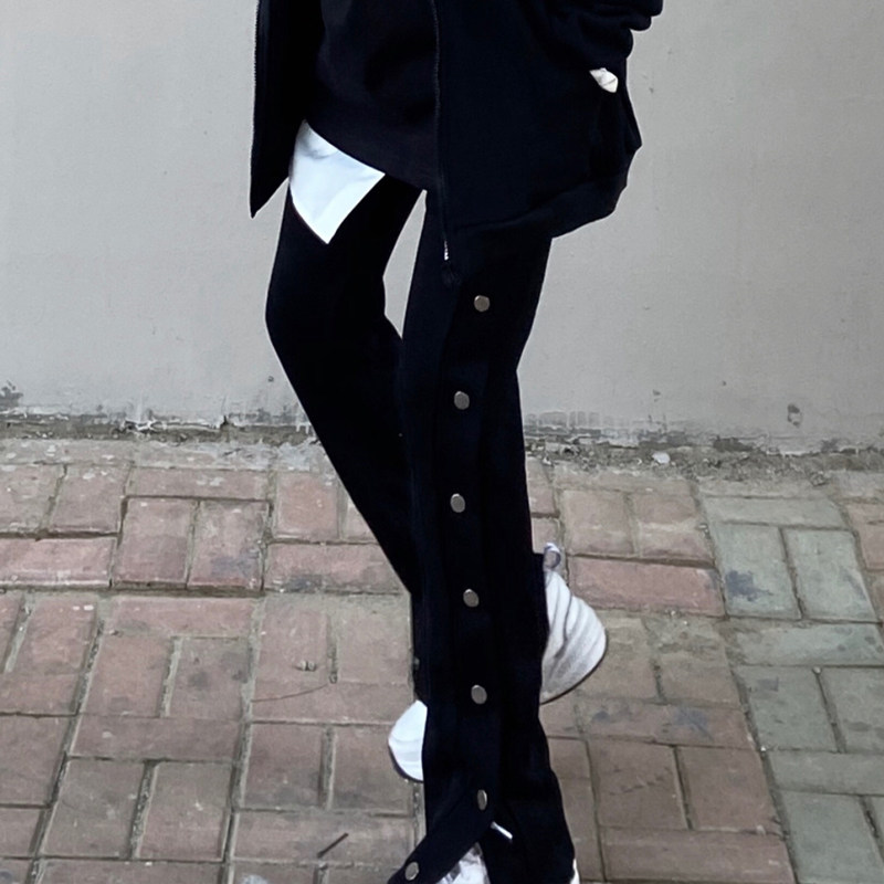 FOG style European and American high street side-breasted slit mopping black casual pants for women spring and autumn straight loose trousers for men
