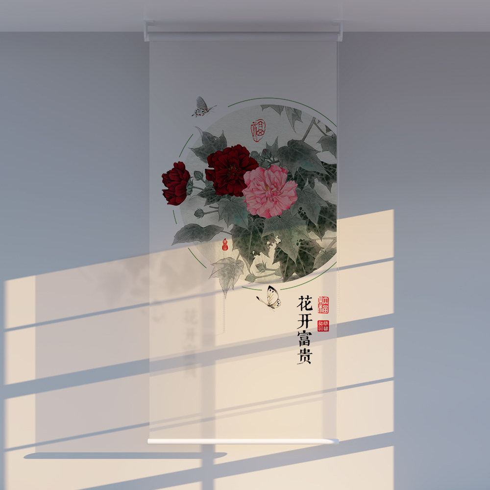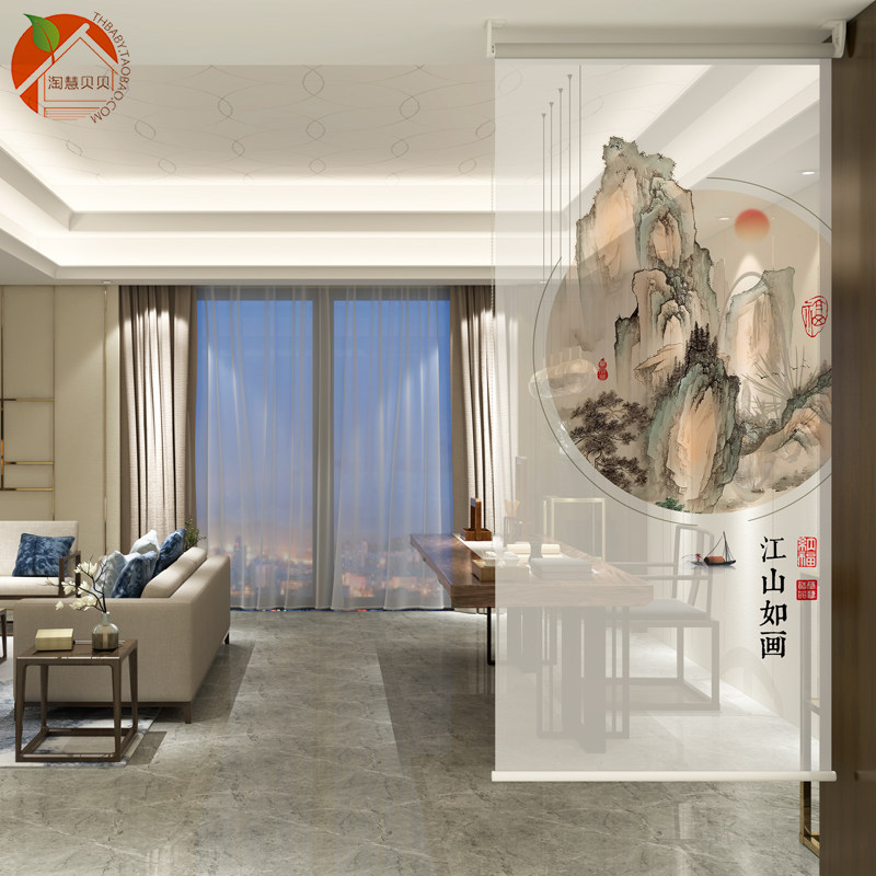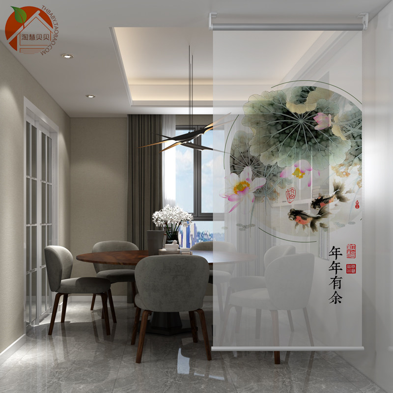 Modern new Chinese home partition curtain Living room lifting hanging screen Bedroom occlusion soft screen Dining room semi-permeable roller curtain