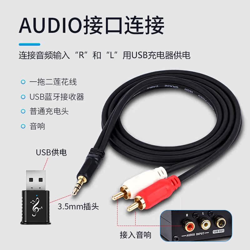 Dual output USB Bluetooth audio receiver car wireless audio box aux car adapter 5.0 adapter