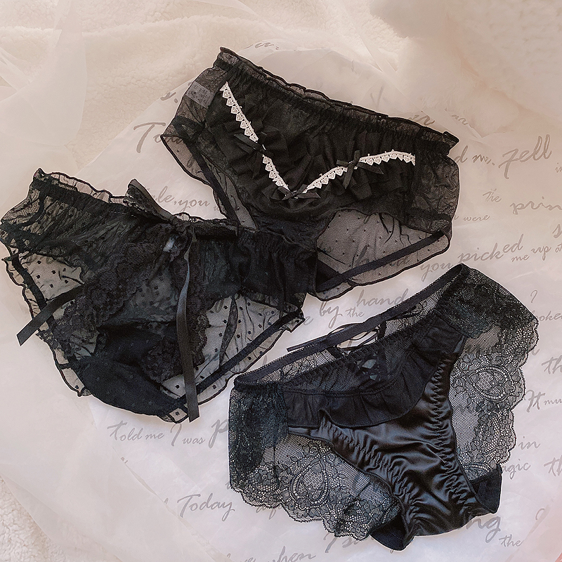 Romantic Galaxy ~ 3 Mysterious black lace pure cotton shorts are pure gay sweet sexy underwear