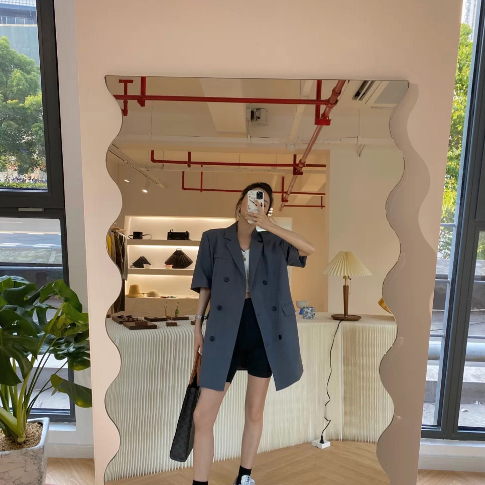 Nordic Light Extravagant Wave Full-body Mirror Clothing Shop Display Slim Floor Mirror Art Alien Mirror Home Wall-mounted Full Body Mirror