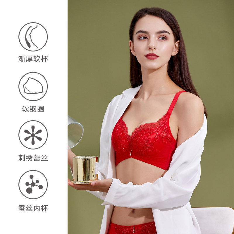 Good wave soft steel ring embroidery lace small cute mulberry silk inner cup bra female coaleste up to the special cabinet bra HW2024