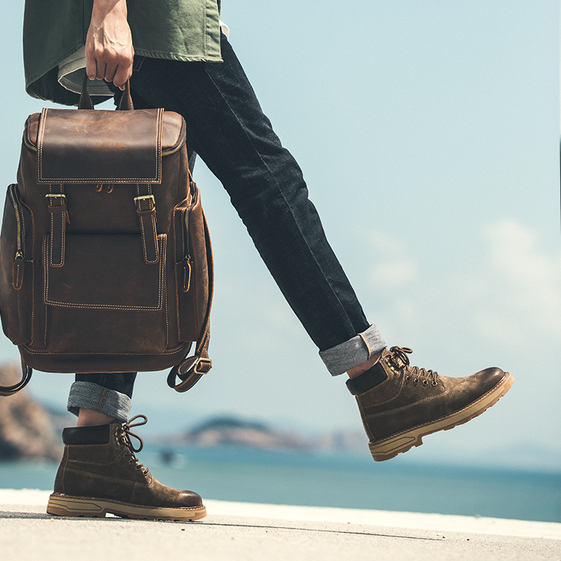 Martin Boots Man Genuine Leather Inellenty Wind Tooling Boots Midbarrel Men's Boots Man High Helps Winter Plus Suede Korean Version 100 Hitch Shoes