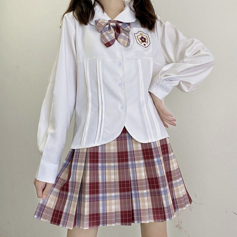Original embroidery jk uniform college wind shirt design sensitive crowd collar loose long sleeve and shirt