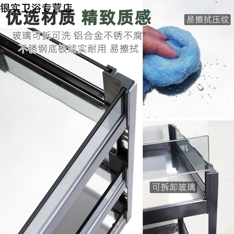 Simple overall cabinet economical household kitchen overall cabinet pull basket glass narrow cabinet seasoning basket mini seasoning rack