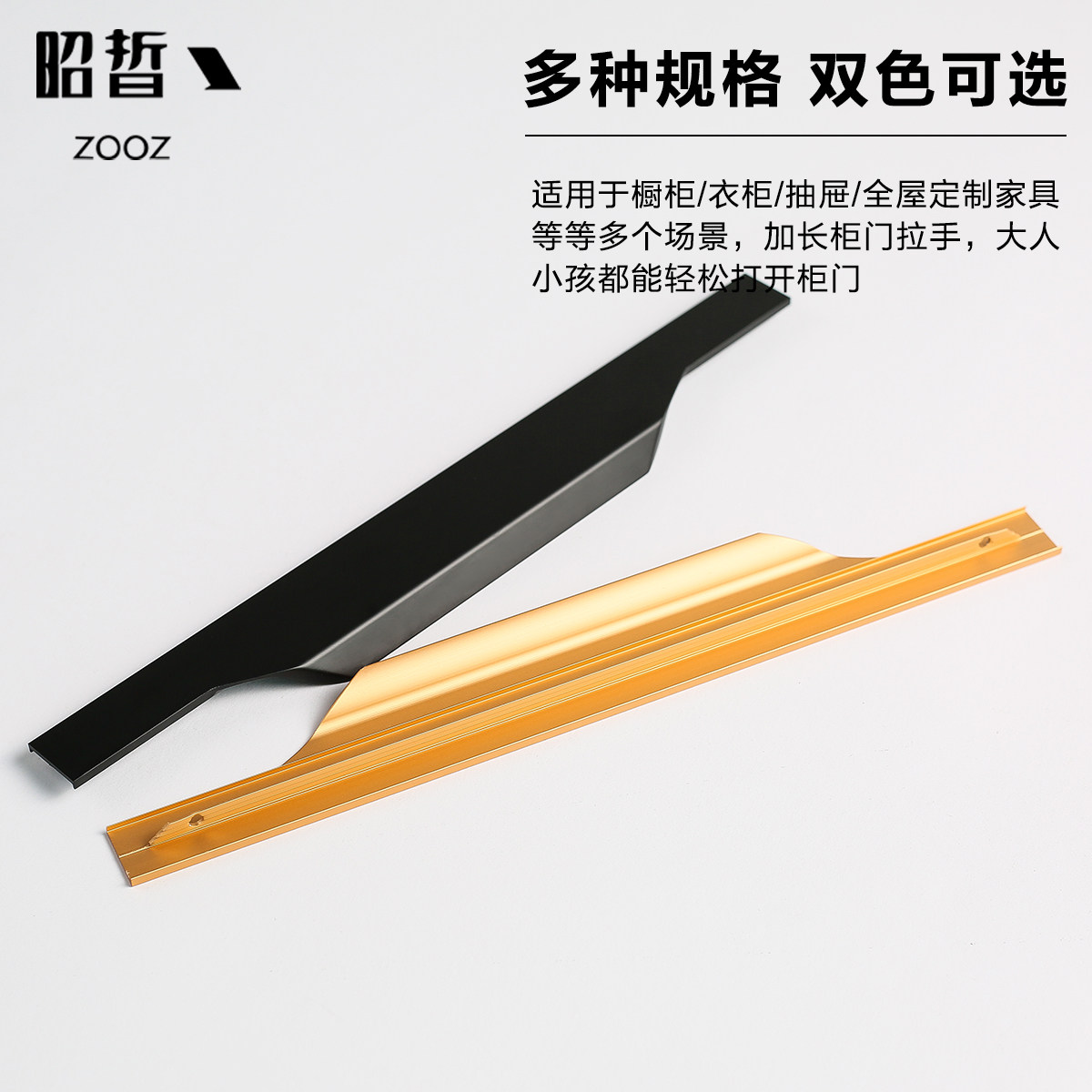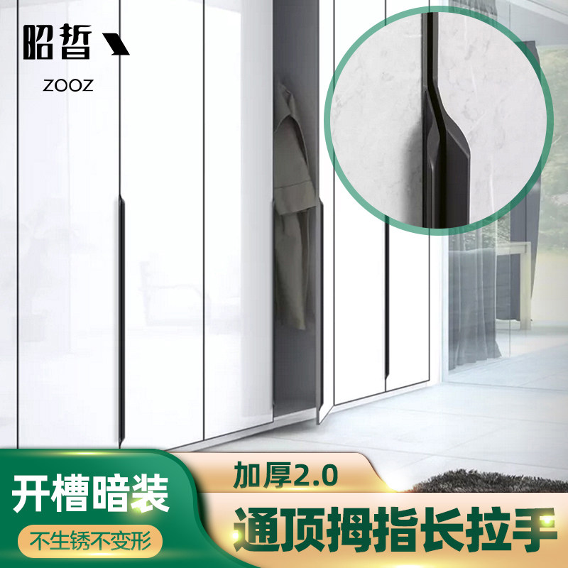 Thumb handle slotted overall cabinet door sealing edge wardrobe handle through the top golden lengthened black invisible handle customization