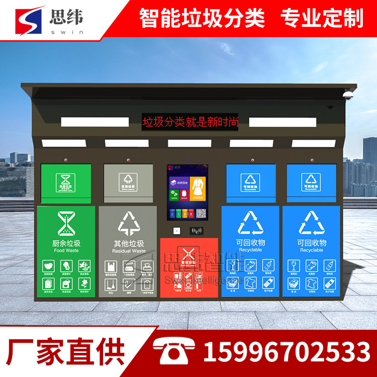 Outdoor custom smart garbage classification recycling tank induction bin automatic classification room swipe card credit factory