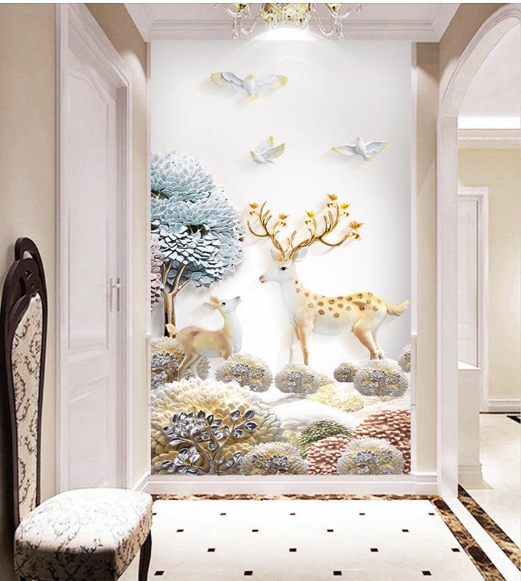 Custom corridor gangway entry door vertical version integrated board entry into the house Genguan Background Wall Fibreboard 3d Solid Living Room Elk Deer