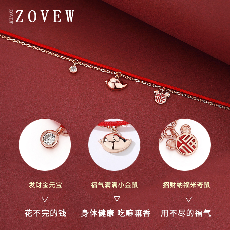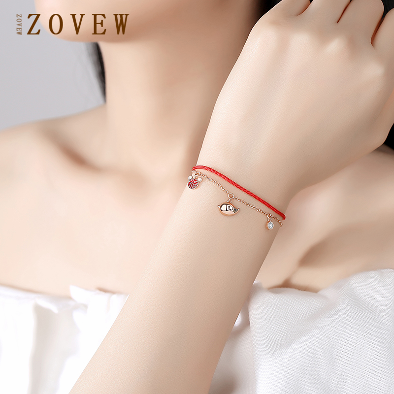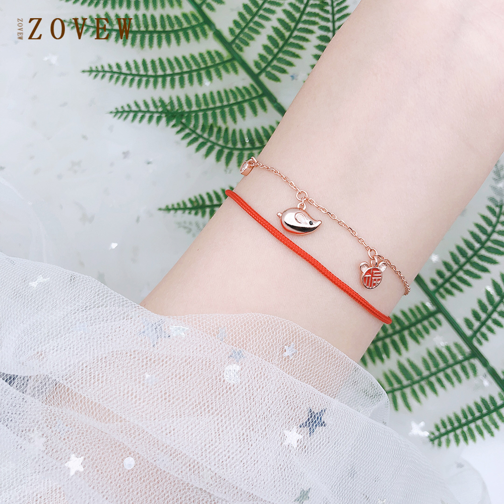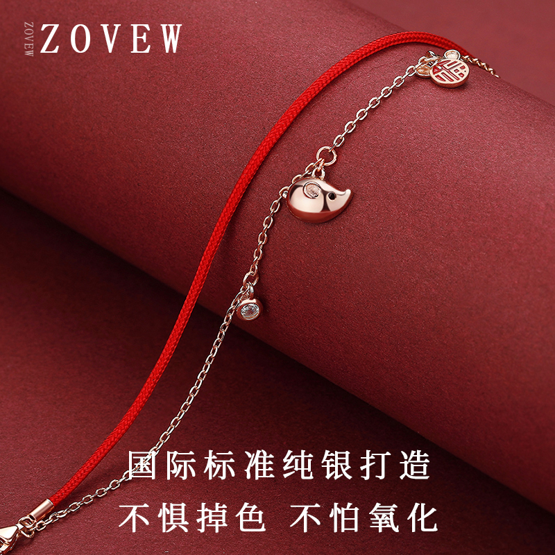 Year of the Rat Bracelet Women's Sterling Silver Simple Headgear Personality Braided Red Rope Birth Year Bracelet Birthday Gift for Girlfriend