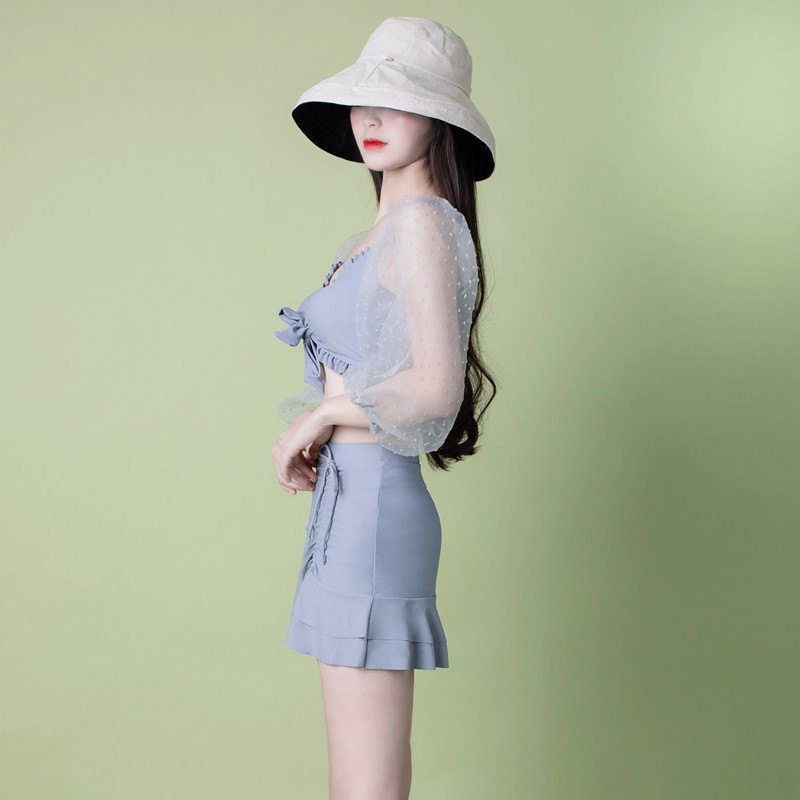 Spa swimsuit women's fairy Fan two-piece three sets of long sleeves High waist cover with slim South Korea Ins conservative swimsuit