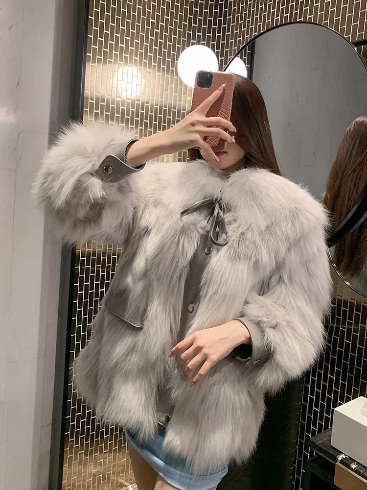 2022 autumn and winter new windbreaker slim young fox fur mid-length Haining genuine fur coat for women