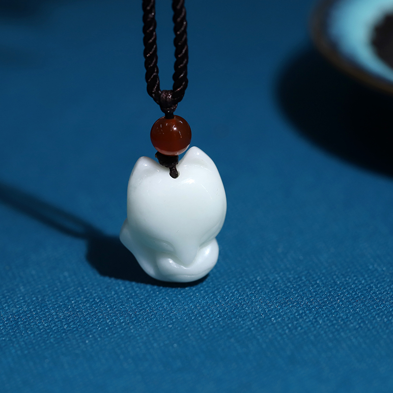 Xi'an blue field jade Xiaoyu jade pendant finely carved male and female children's money clever and intelligent to guard love