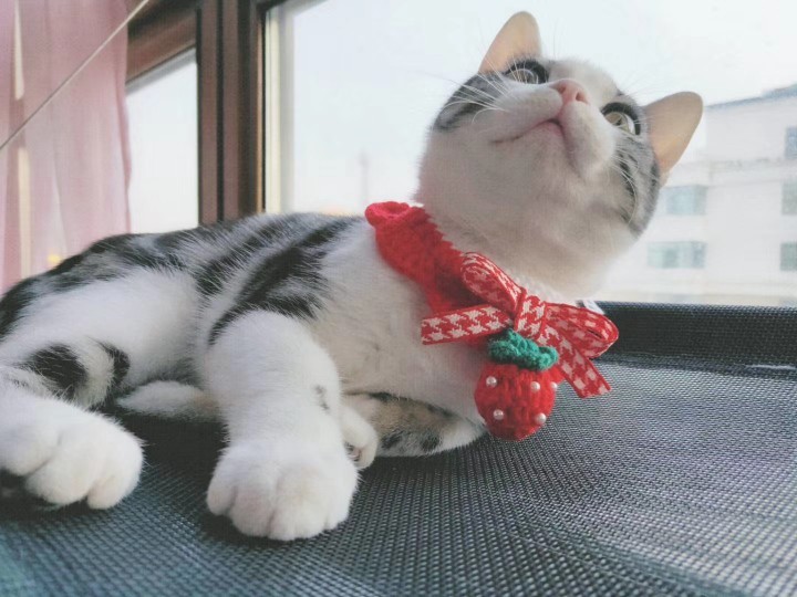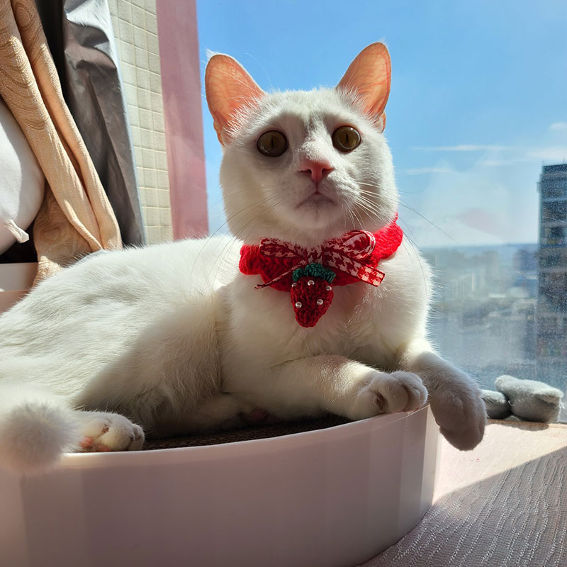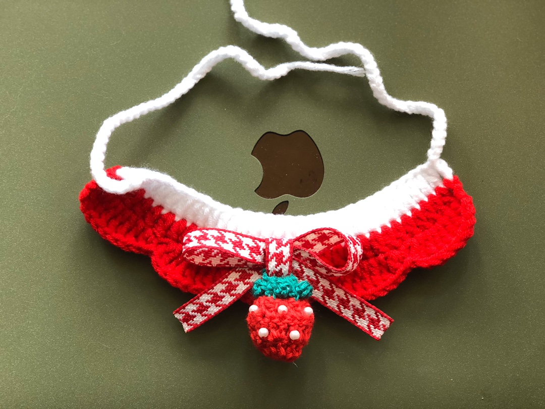 Cat collar handmade diy wool knitted strawberry scarf cute collar small strawberry bow tie cute pet jewelry