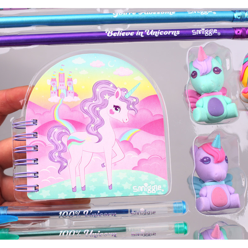 Australian Smiggle Curly Hair Unicorn Styling Gift Box Stationery Suit Elementary School Kids Cartoon Rubber Pencil