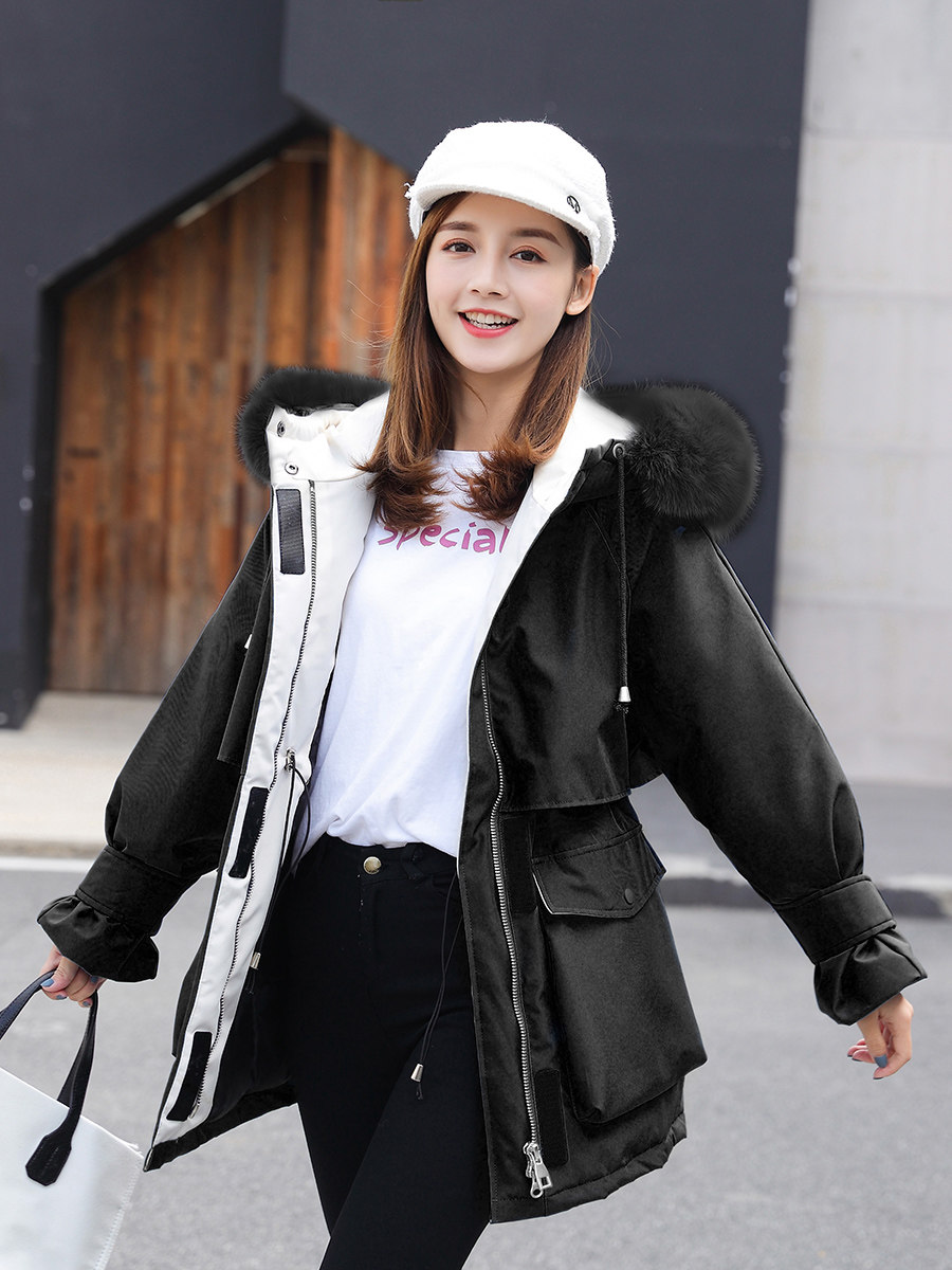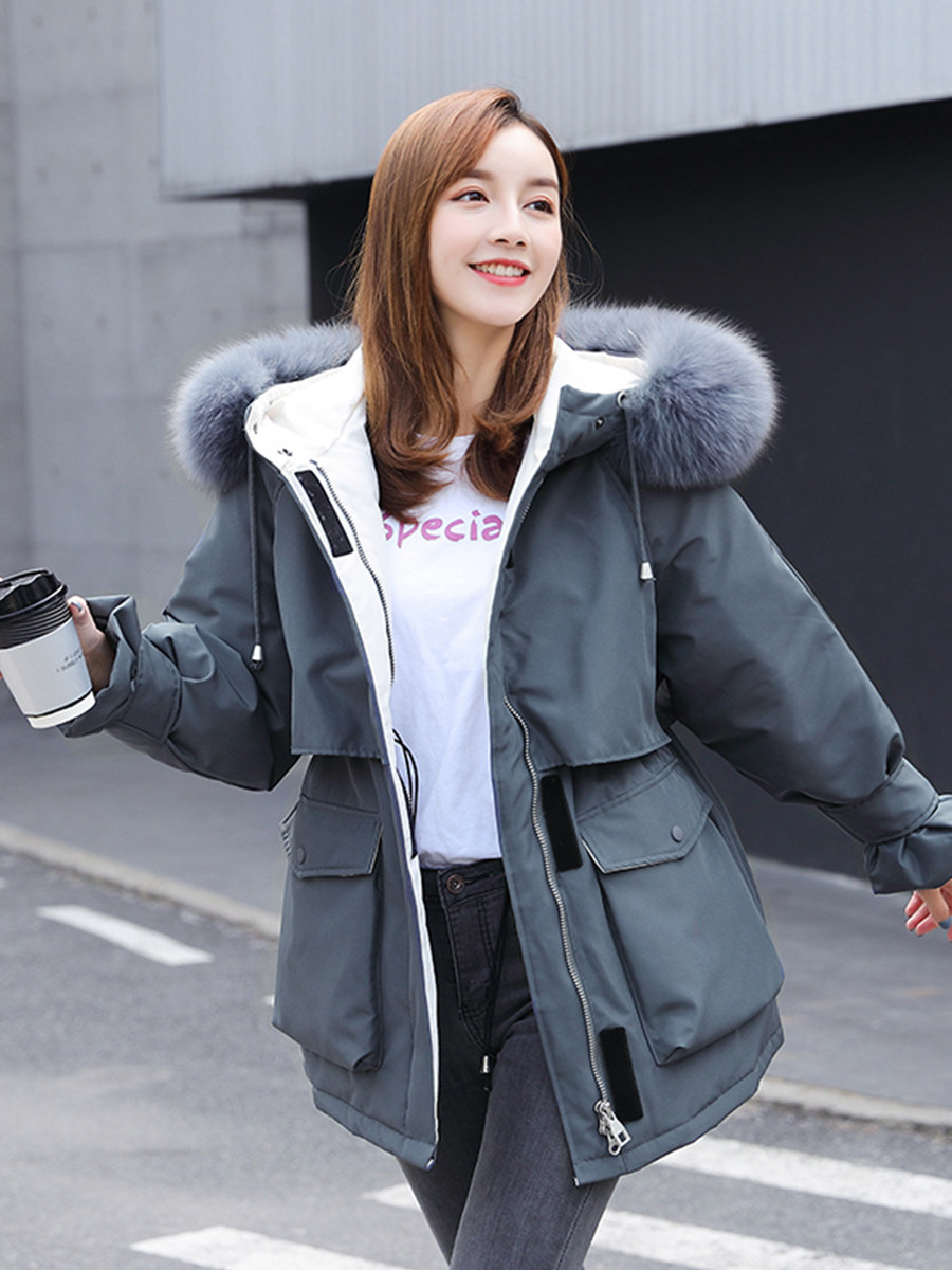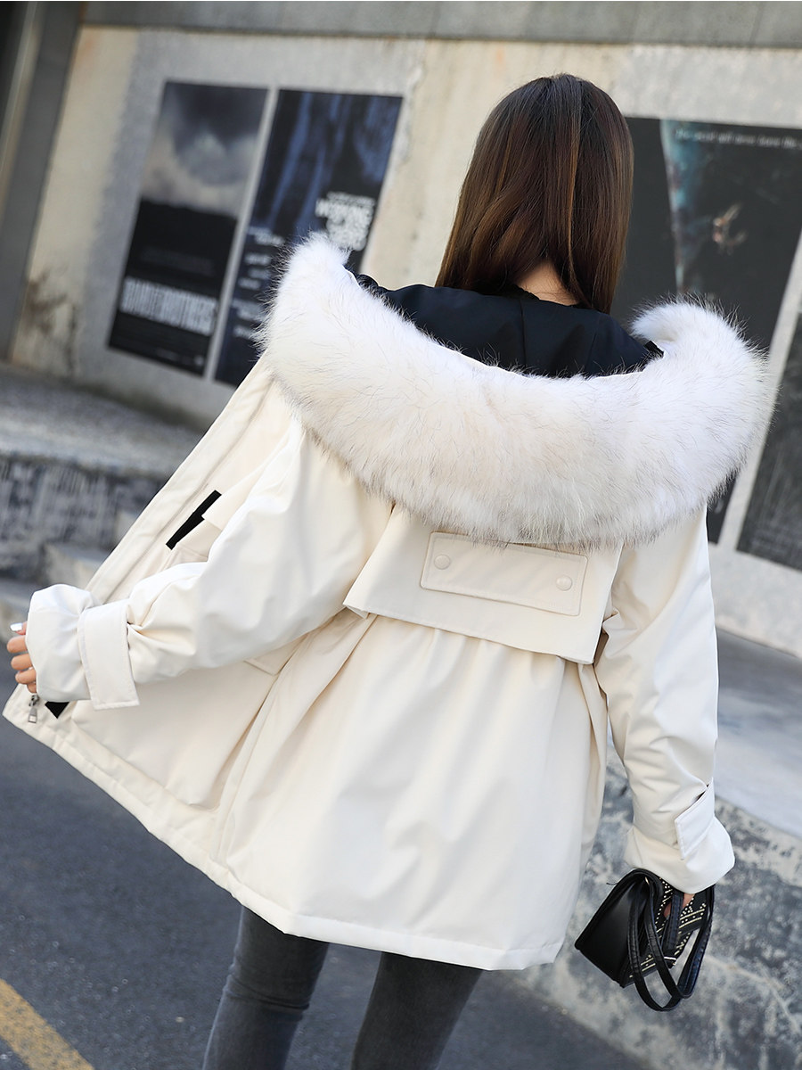 Off-white with real fur collarBlue with real fur collarGrey with real fur collarBlack with real fur collar