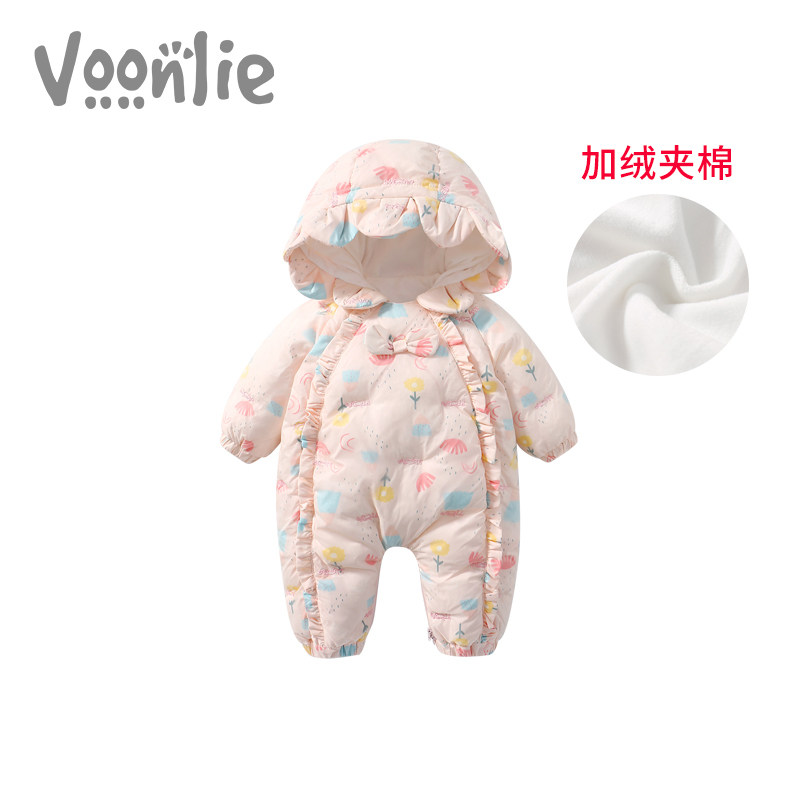 Where hunting baby clothes autumn and winter set newborn baby girl jumpsuit cotton plus fleece thick ha coat hugging clothes out of the clothes