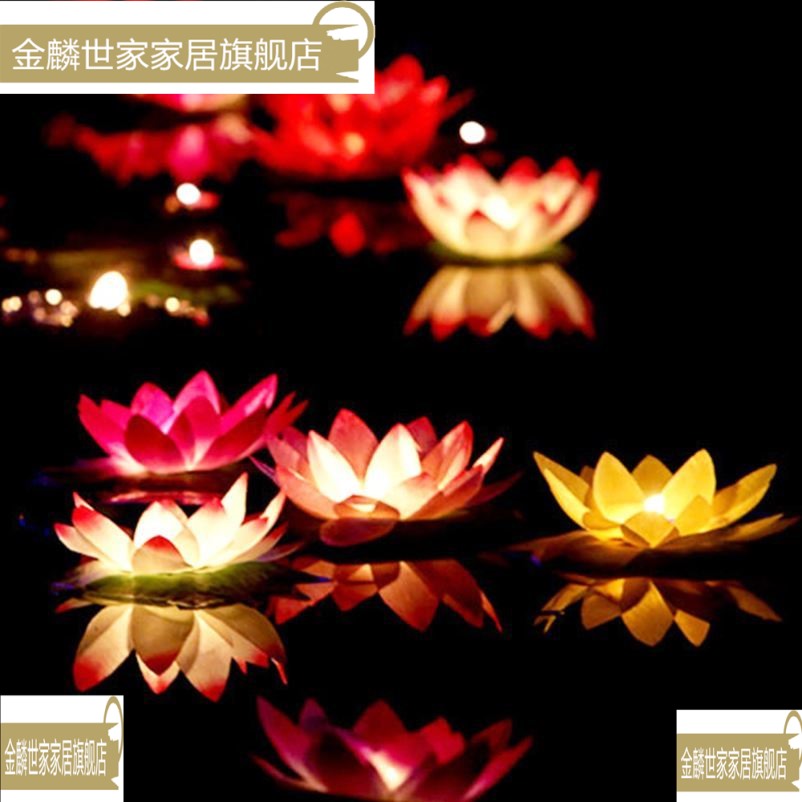 Mid-autumn festival river lantern colorful lotus lantern headlight lotus lantern water lantern water sky lantern praying wish lantern