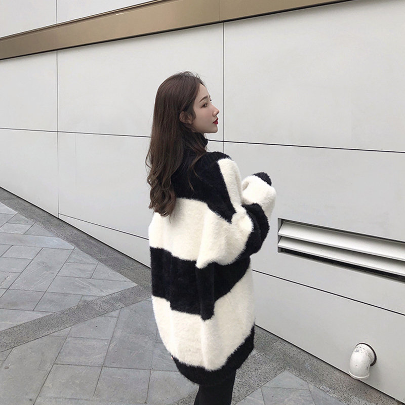 Short mink fleece sweater women's winter thickening 2022 new Hong Kong style loose outer wear explosive style lazy style retro Hong Kong flavor