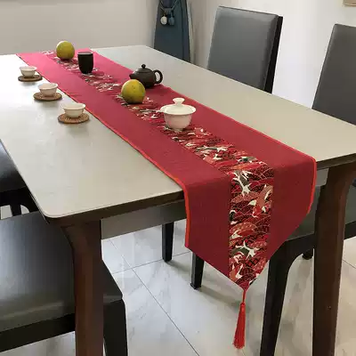 Festive big red tea table flag Chinese wedding ceremony wedding table cloth tea mat Chinese style cotton hemp Classical