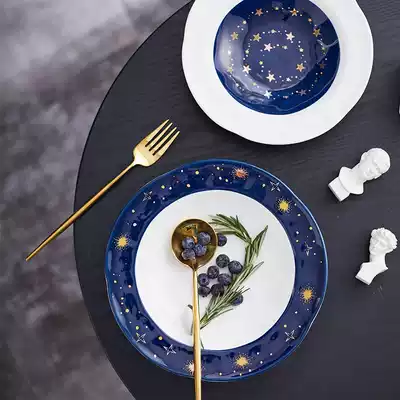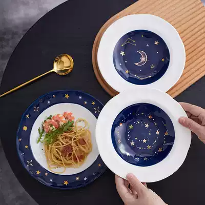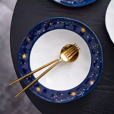 Porcelain Wood one creative star ceramic plate Net red ins tableware round breakfast plate Nordic household plate plate plate
