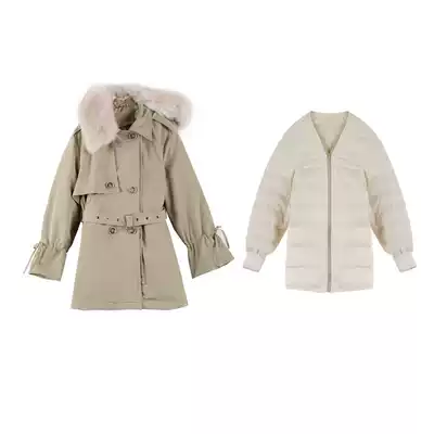 Sandro Tonali winter New detachable down inner parka jacket jacket real hair collar double wear down jacket