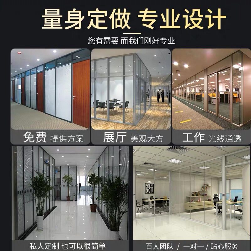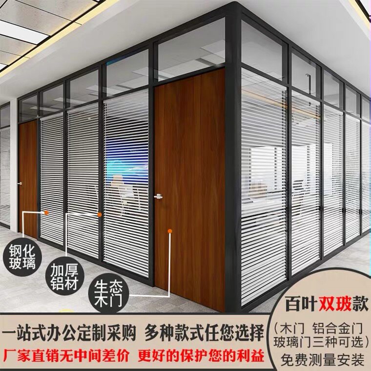 Chongqing office tempered glass partition wall factory aluminum alloy single and double glass transparent hollow louver sound insulation high partition