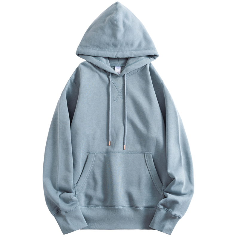 Morandi color series 340g woolen cloth foodie blue even cap sports shirt pure color loose sports hat-shirt thick solid male and female