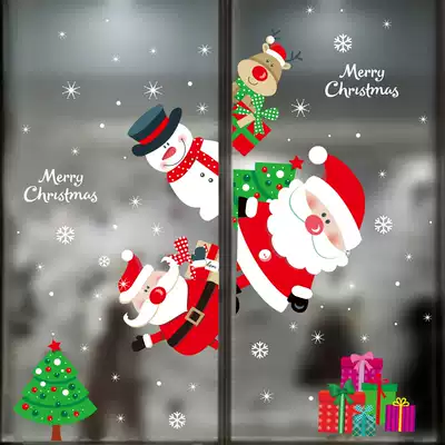 Christmas Day decorative window stickers Glass stickers window electrostatic stickers Christmas tree old snowman creative layout color stickers