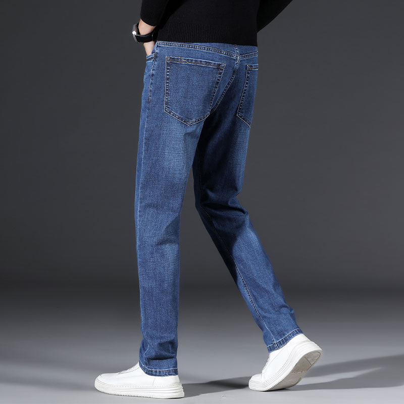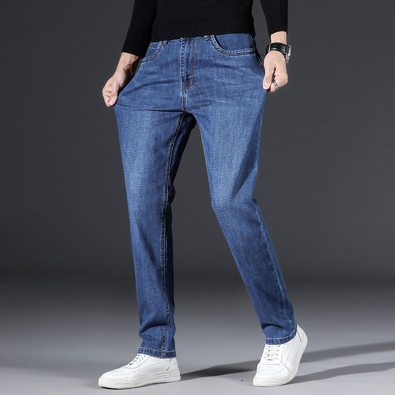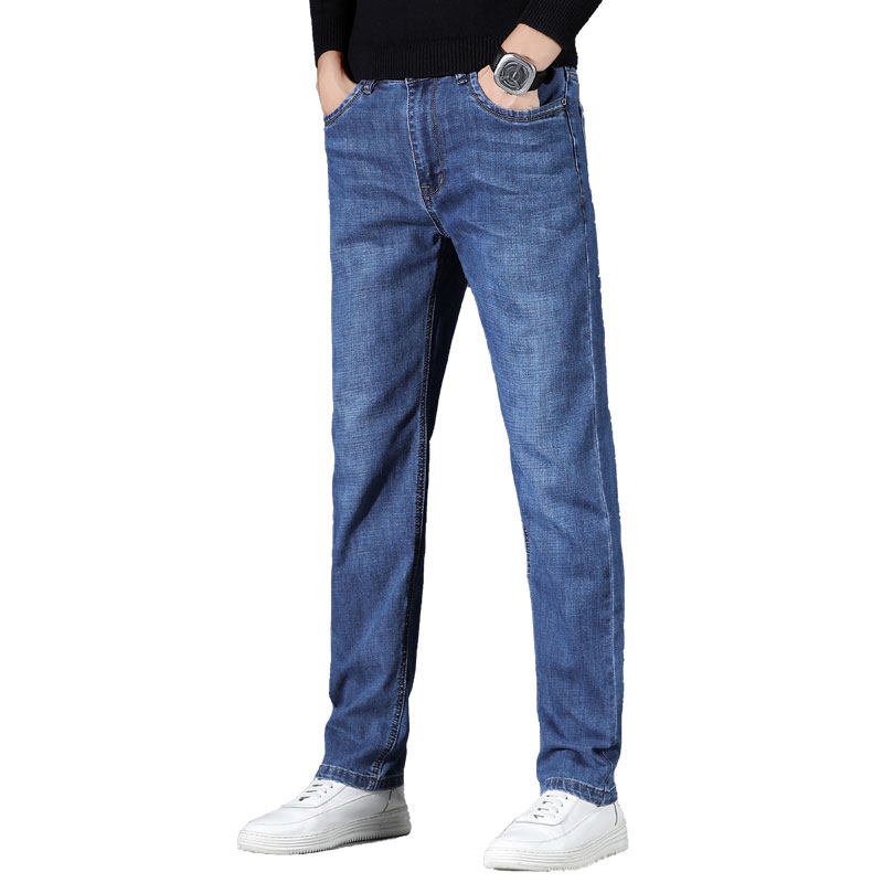 Spring and autumn new jeans Men's straight cylinder loose 100 hitch of Korean version Tide Cards Big Size 2022 Summer Blue Casual Long Pants