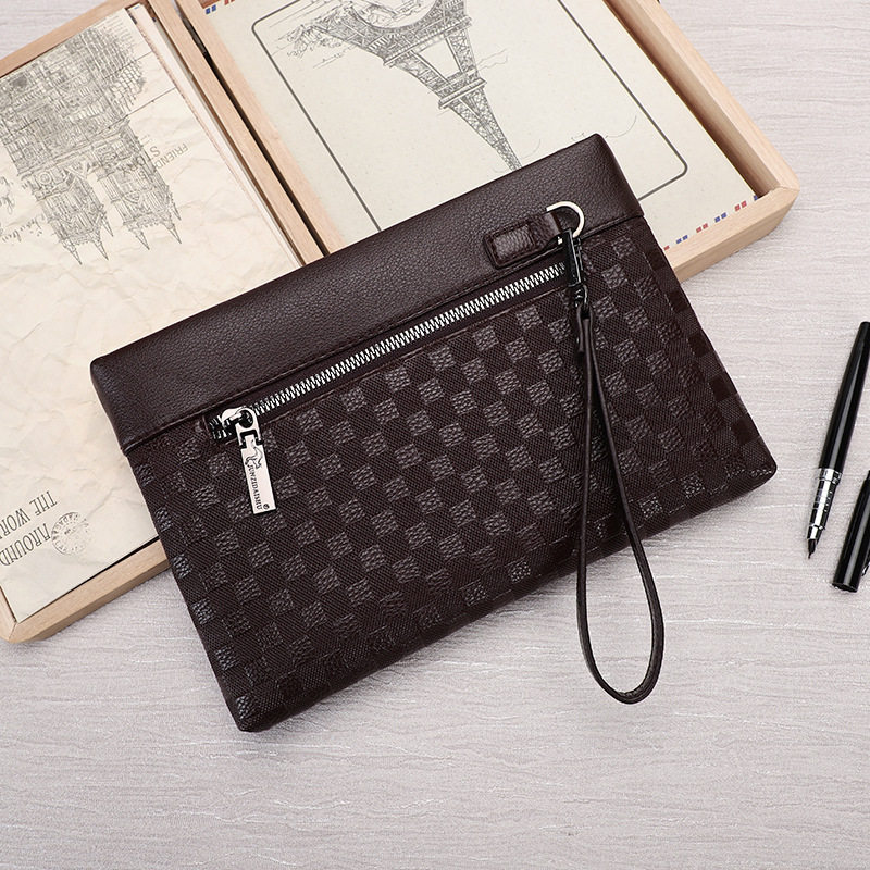 Plaid clutch bag male Korean version Japanese trendy male and female handbag casual soft leather hand bag pull bag grab bag mobile phone bag