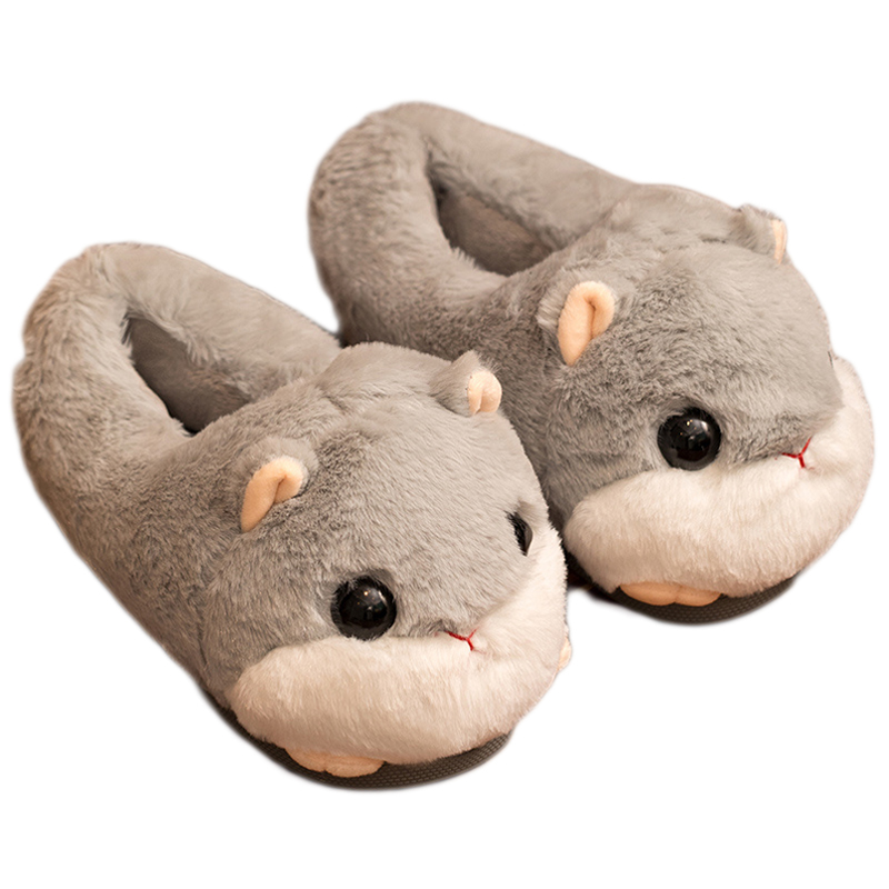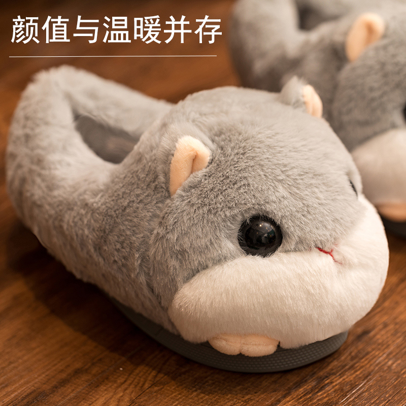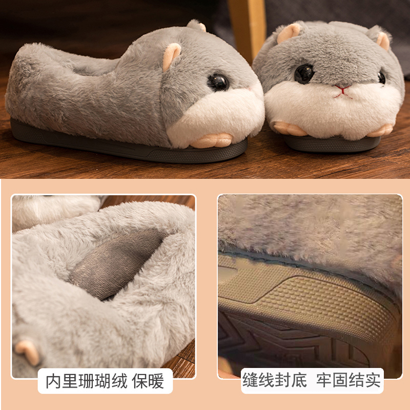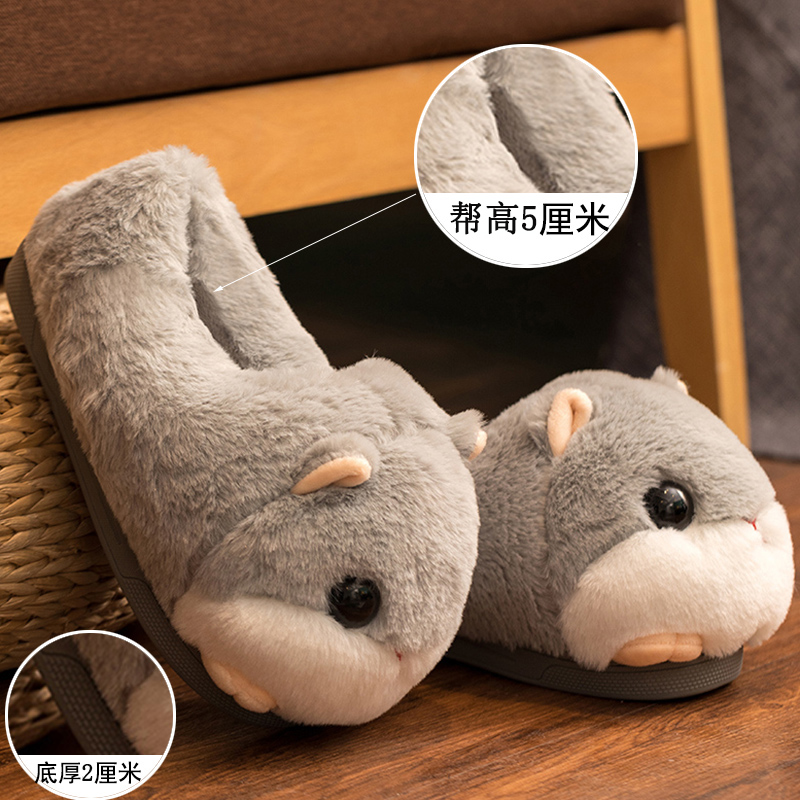 Cute hamster slippers bag heel plus velvet thick bottom female winter indoor home plush warm cotton shoes couple home shoes
