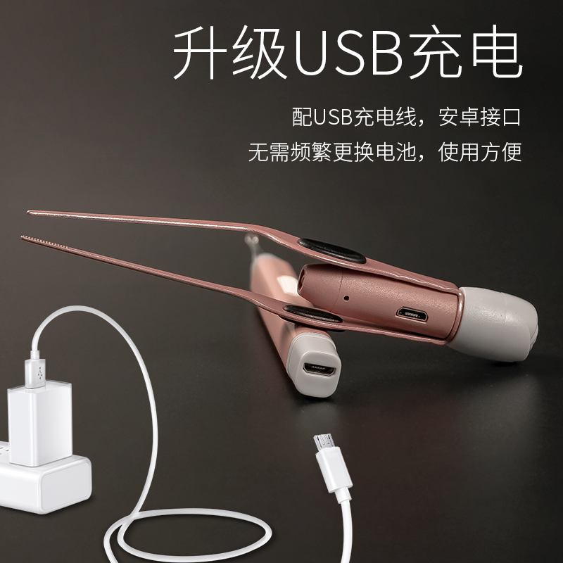 Rose Gold Charging Luminous Ear Spoon Rose Gold Charging Luminous Ear Tweezers Rose Gold Charging Luminous Ear Spoon Rose Gold Charging Luminous Ear Tweezers Rose Gold PVC containing box Three sets of Meimei