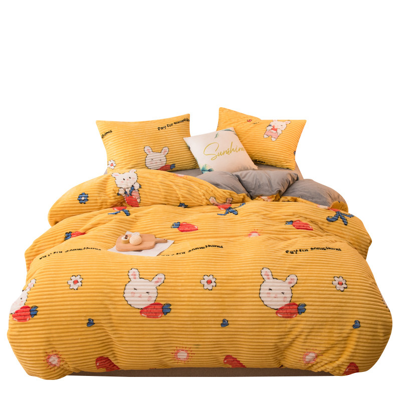 Bright yellow milk tea rabbit velvet quilt cover Q