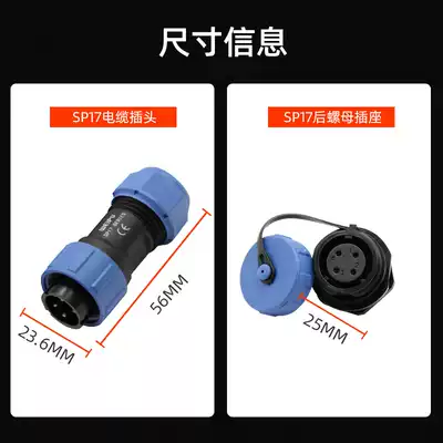 Weipu weipu aviation connector SP1710 Rear nut socket 3 pin 4569 core IP68 waterproof cable plug