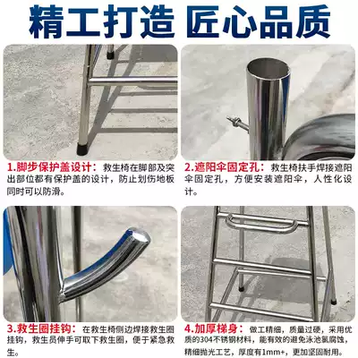Swimming pool lifeguard chair 304 stainless steel lifeguard chair safety observation observation deck referee high foot ladder equipment