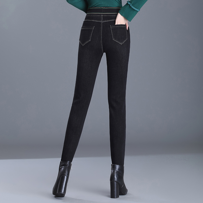 Elastic waist winter plus velvet jeans women's high waist thin middle-aged mother women's pants thick elastic narrow pants