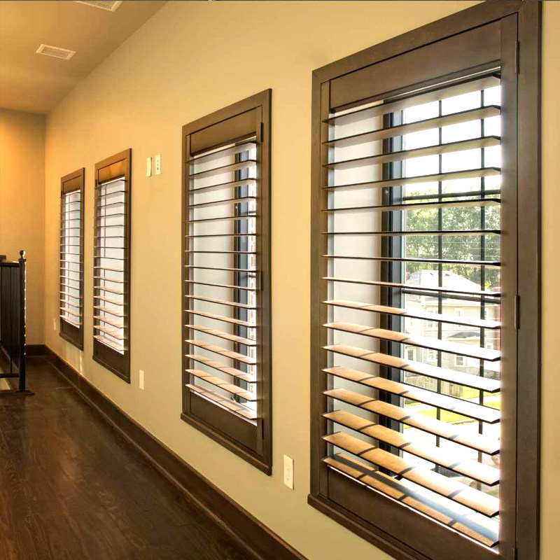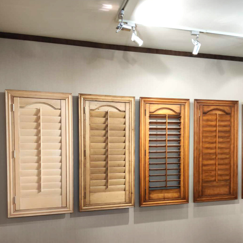 Solid wood shutters Wood folding breathable windows Movable louvers Push-pull folding doors and windows up and down hanging wheel partition customization
