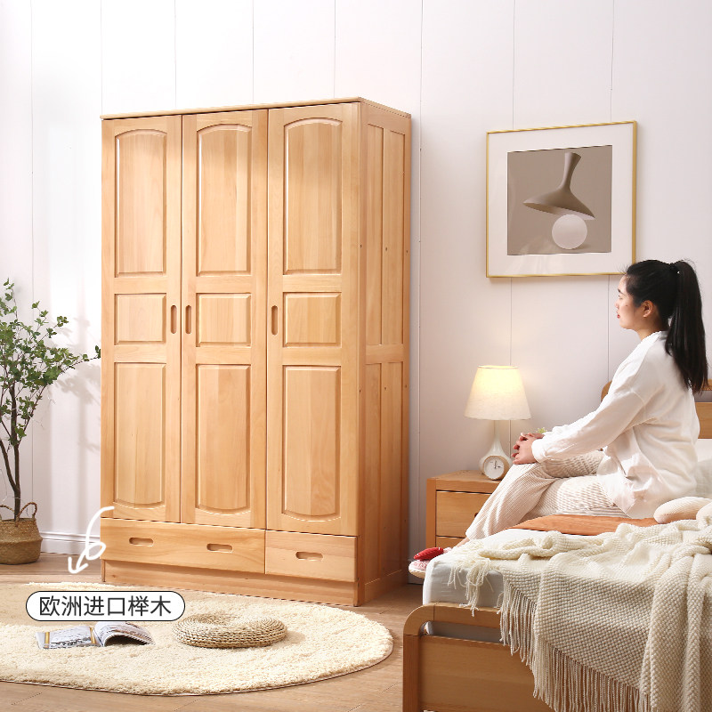 Gold Multijoy All-wood Wardrobe Modern Minimalist Containing Cabinet Closet European Beech Wood Full Solid Wood Door Bedroom Wardrobe