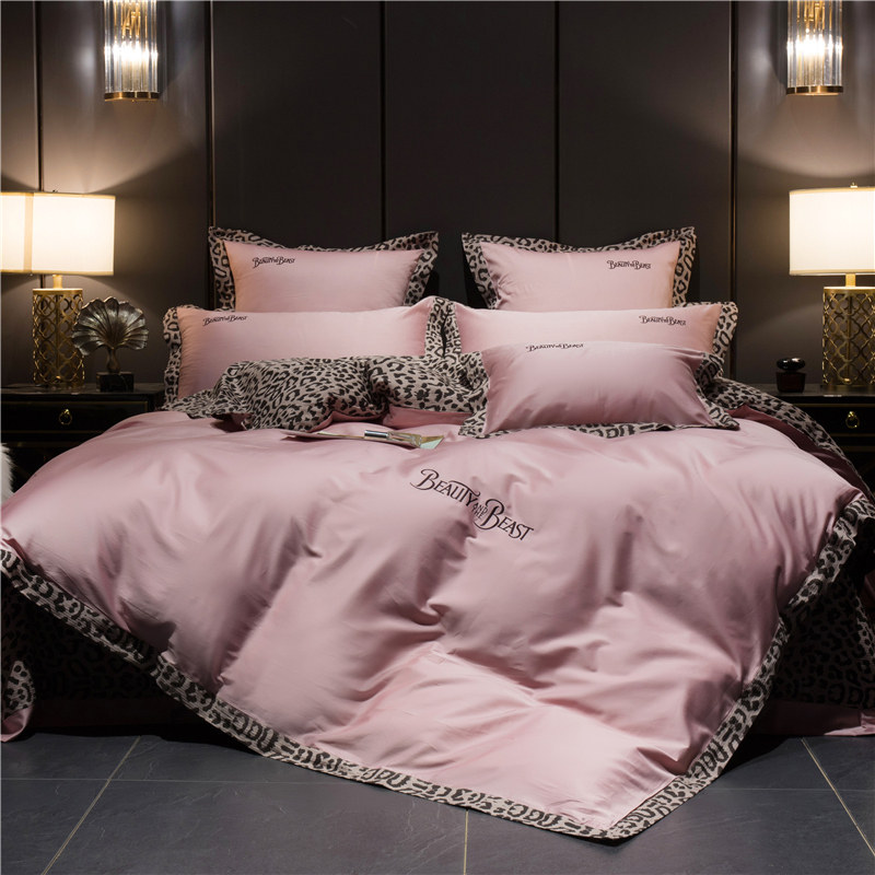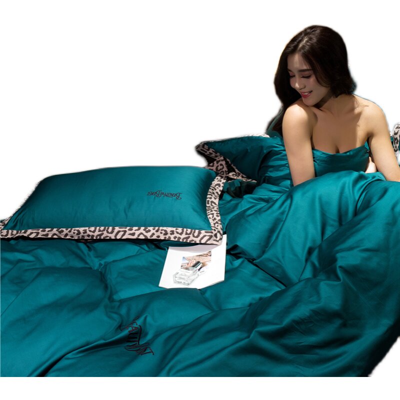 60 long suede cotton four pieces of light lavish minimalist Yoo pure cotton full cotton rounded corner sheet quilt cover bed bedding