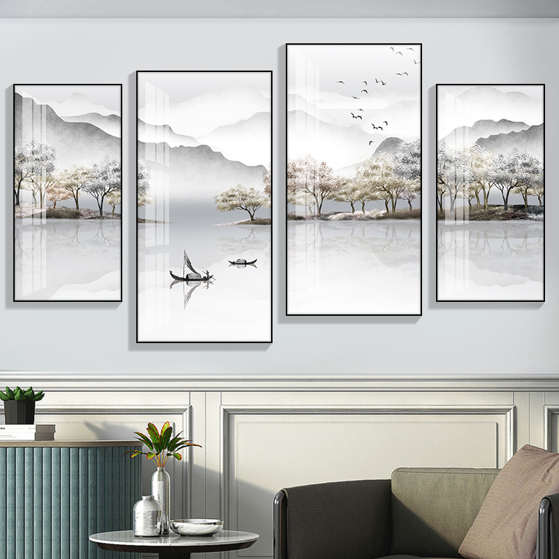 New Chinese living room decoration painting light luxury sofa background wall hanging painting Chinese style landscape painting mural tea room quadruple painting
