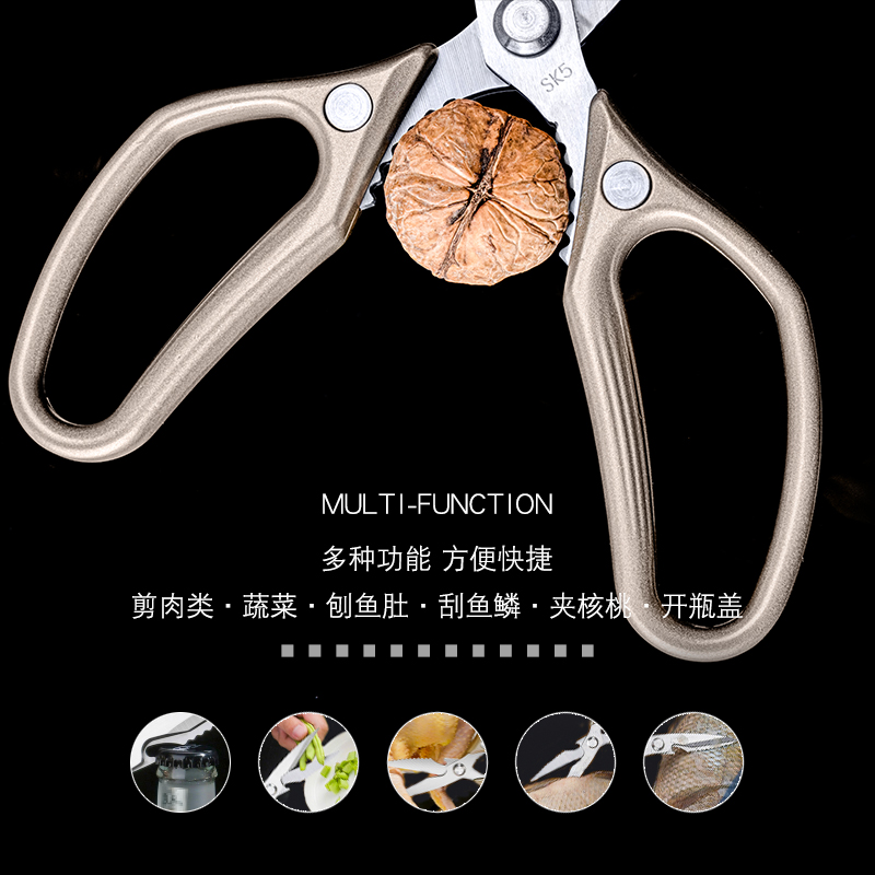 Disu imported SK5 stainless steel multi-function household kitchen scissors strong scissors cut meat bones kill fish special