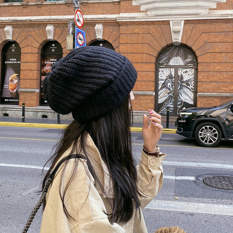 Oversized version! Hairy hat women autumn and winter warm ear hat casual hundred knitted hat loose pile hat
