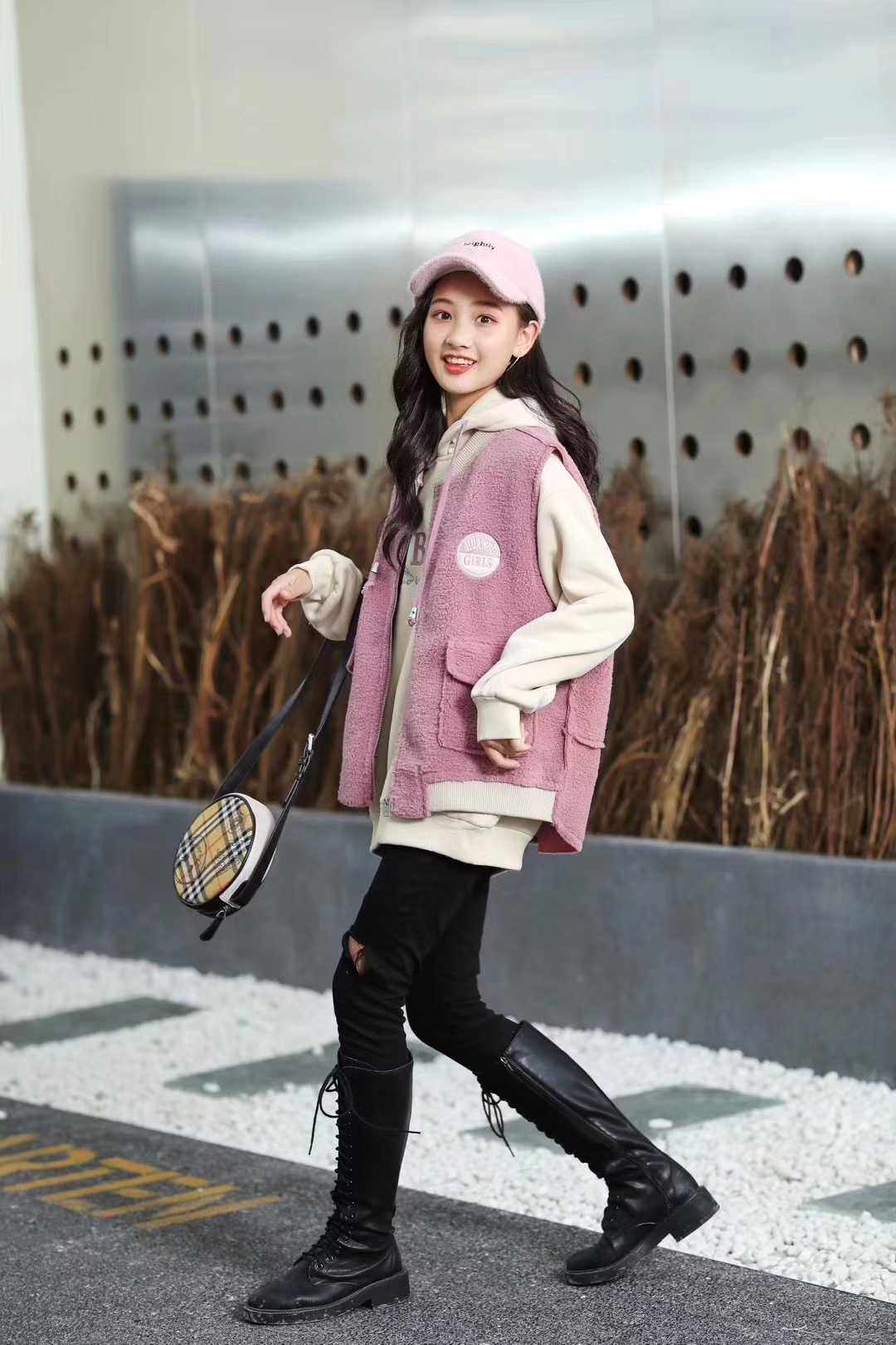 Huanuo brand children's clothing girls middle and big children 2022 autumn and winter new special price plus fleece sweater vest two-piece set