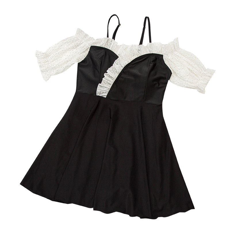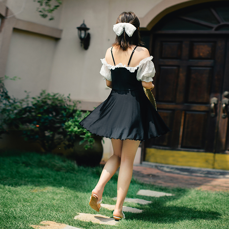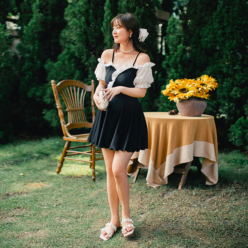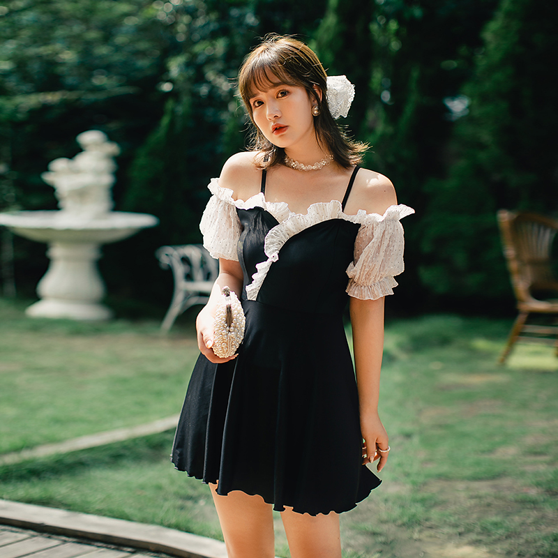 New swimsuit woman large size size fat mm dress style even body black and white Sexy Shade Slim Princess Fan Spa Swimsuit
