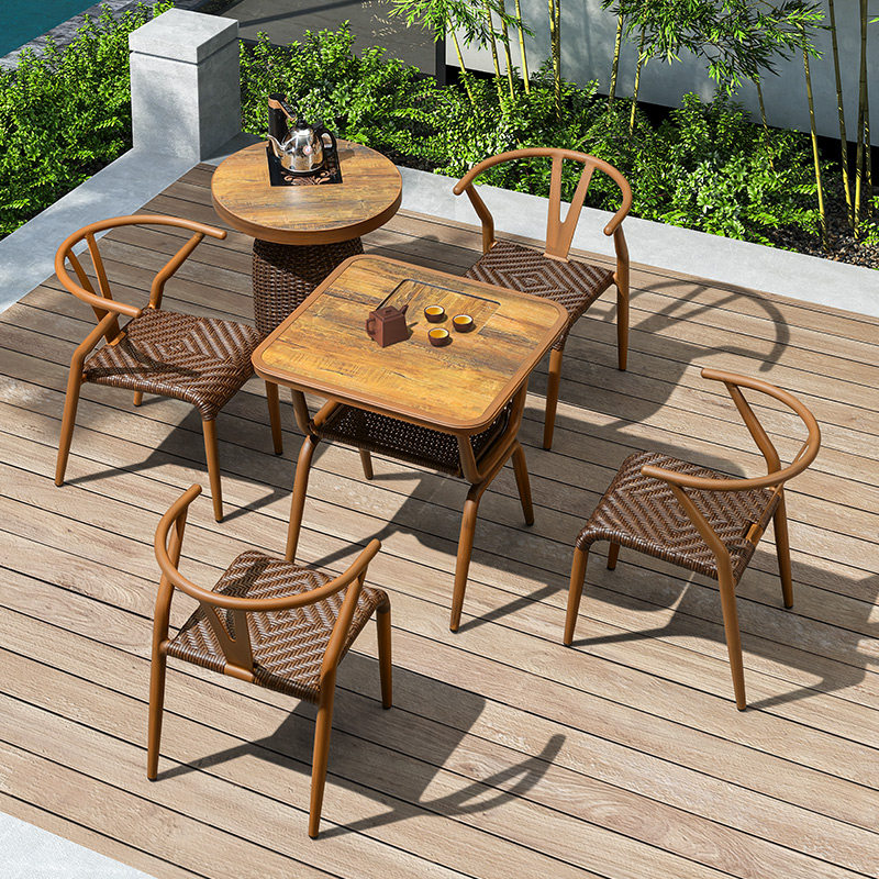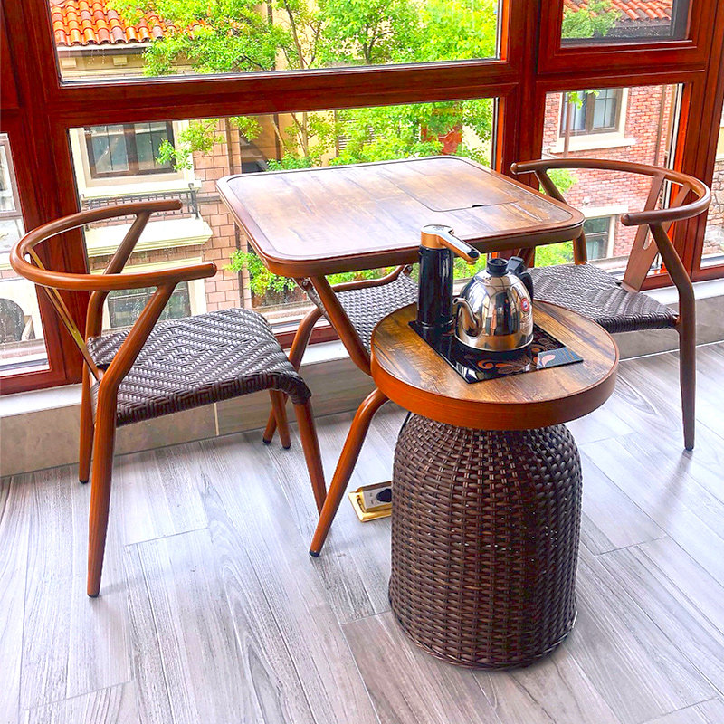 Balcony tea table and chairs outdoor leisure rattan chair three-piece set small coffee table Chinese tea table combination small apartment balcony table and chairs