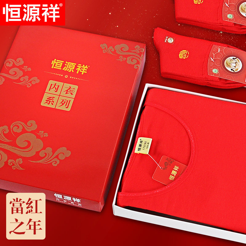 Hengyuanxiang elderly red life underwear set male and female autumn clothes autumn pants warm clothes belong to the year of the tiger mother and father